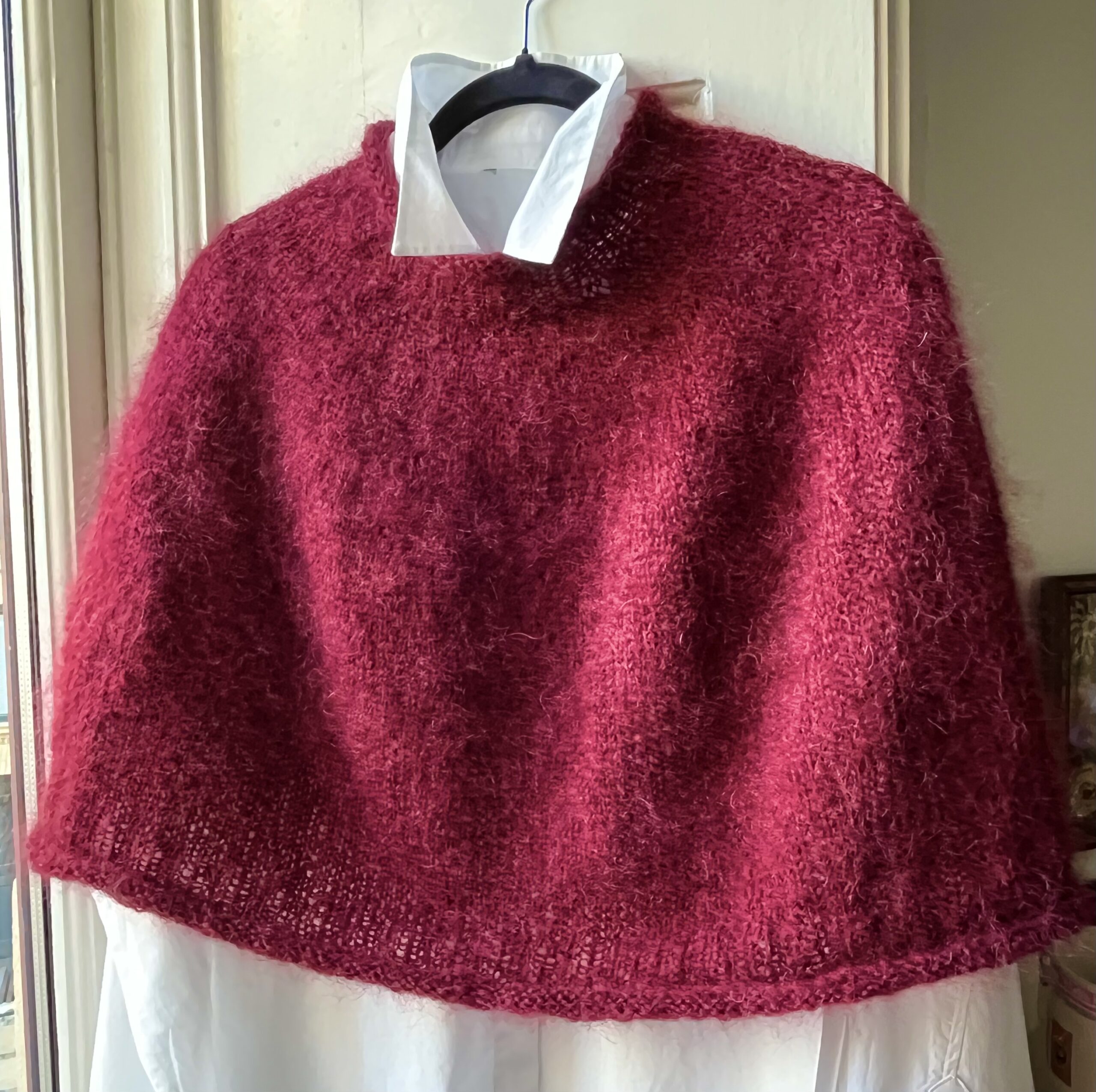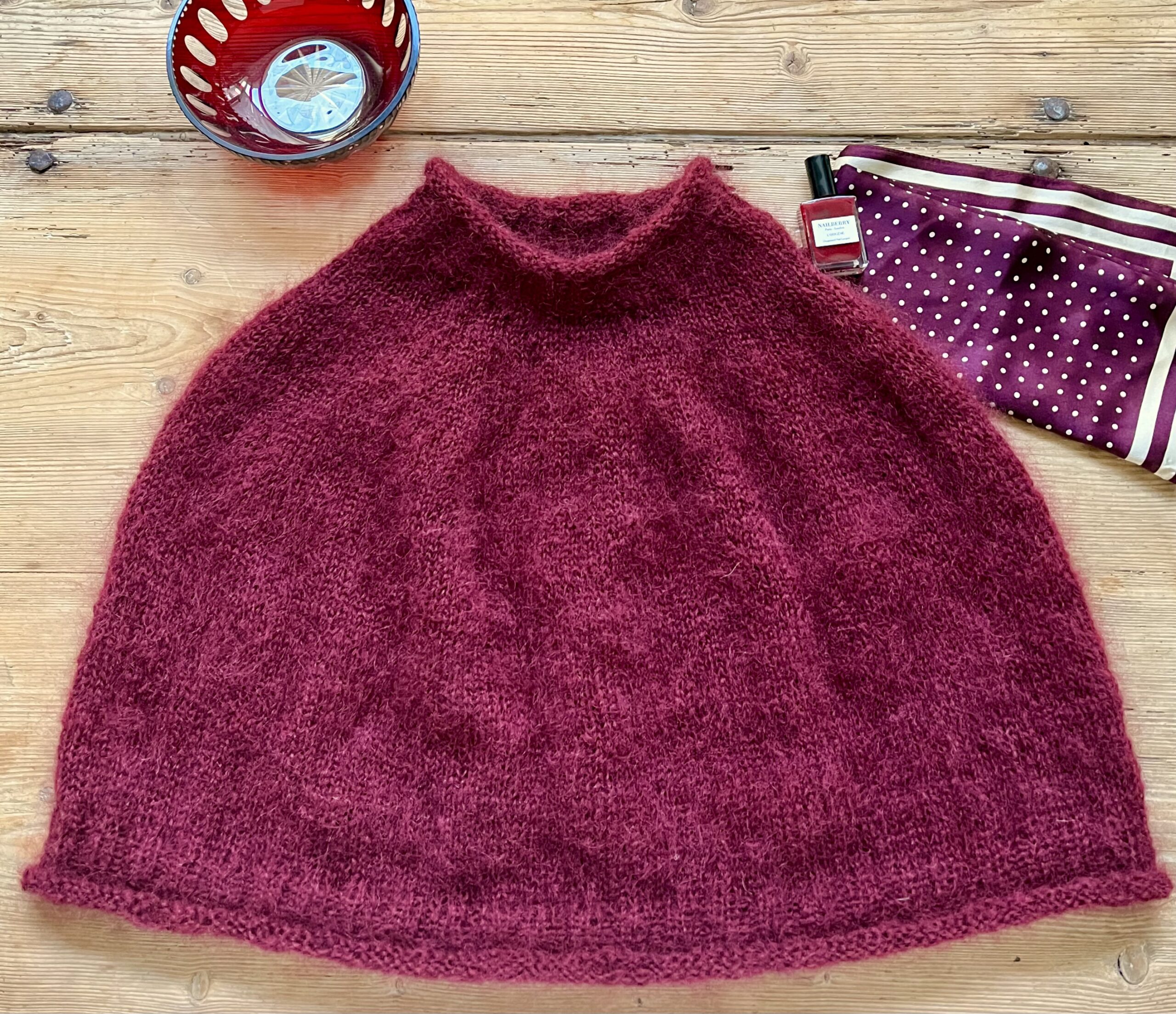 En poncho er og bliver en fantastisk opfindelse i al sin enkelhed, og den her lille lette og vamsede poncho er lige til at holde skuldre og ryg lune med. Den er nem at strikke og lidt klokkeformet, så den ikke bliver et uformeligt telt. Den er supersød over skjorte og jeans og blød og feminin over den fine kjole, så what’s not to like? Og så går der bare 3 ngl. blød mohair fra Permin til den.