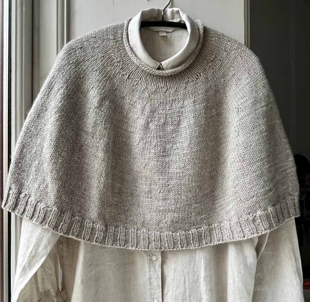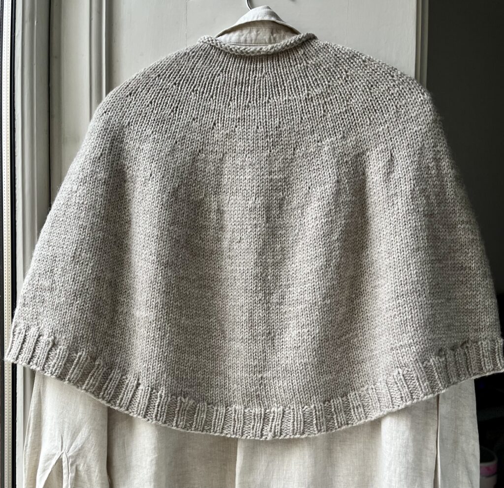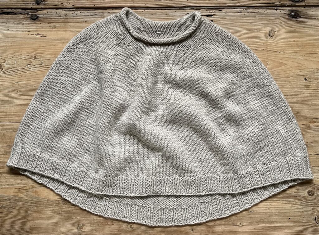 Ponchoen strikkes oppefra og ned.