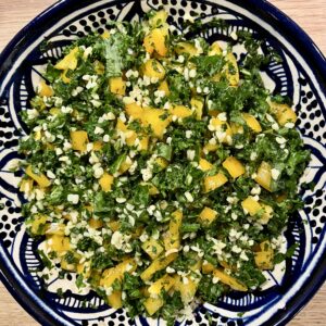 Tabouleh er en herlig frisk salat, og den her vinterudgave med grønkål er god til både kød og fisk – og helt alene evt. med et stykke godt surdejsbrød til.  Og smuk ser den jo ud, og så er det både sund og billig mad – wkat’s not to like?. Jeg elsker mynte, så hold dig ikke tilbage med det,…