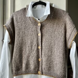 De fleste af os holder mest af det classy men gerne med et lille twist. Her er det et lille strukturmønster og den smalle konrastbort, som gør hele forskellen. Vesten strikkes på god gammeldags manér nedefra og op i et stykke til ærmegabet, så der ingen sammensyninger er. Vesten er kort og bred med rund hals, så den er superfin…